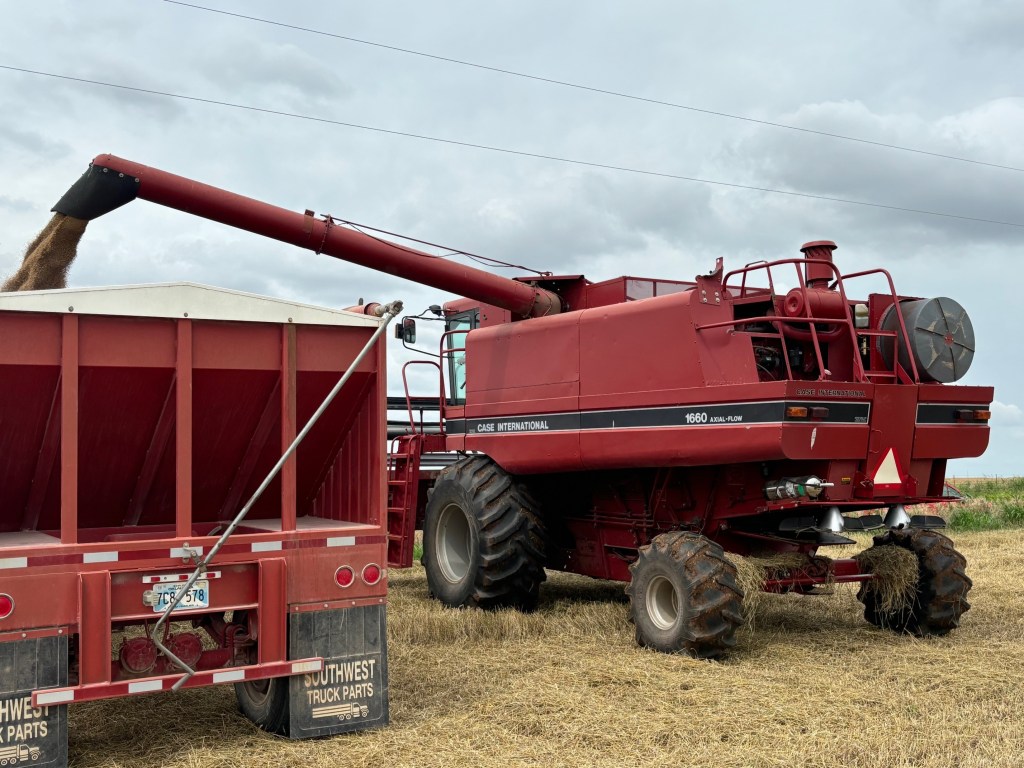 Hobart- This area has not moved along as fast due to heavier rains at times earlier in the season. Test weights averaging 59 lbs. per bushel for the location. Yields ranging in the mid 30’s to mid 50’s with some management intensive wheat making in the high 70’s to low 80’s. Protein is averaging 11.2% Several reports from producers also show good wheat in this region if they are just able to get into the fields to get it harvested. This region reported to be 70% harvested.