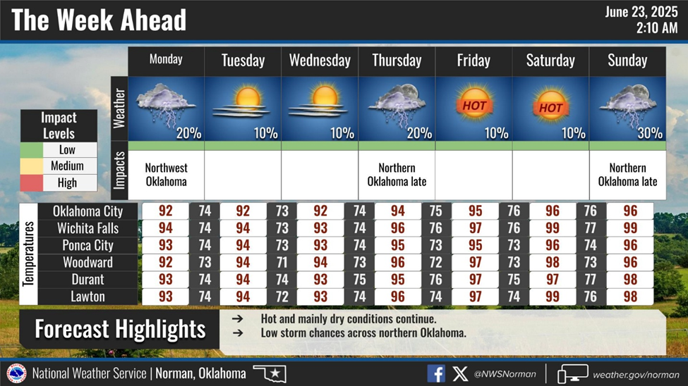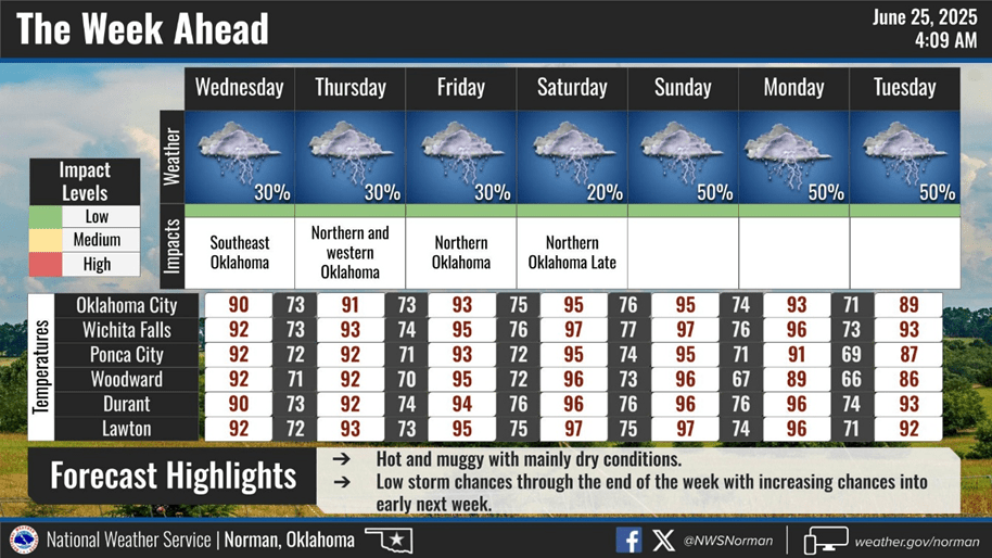 Below, see the 7-day forecast provided by the Oklahoma Mesonet.
