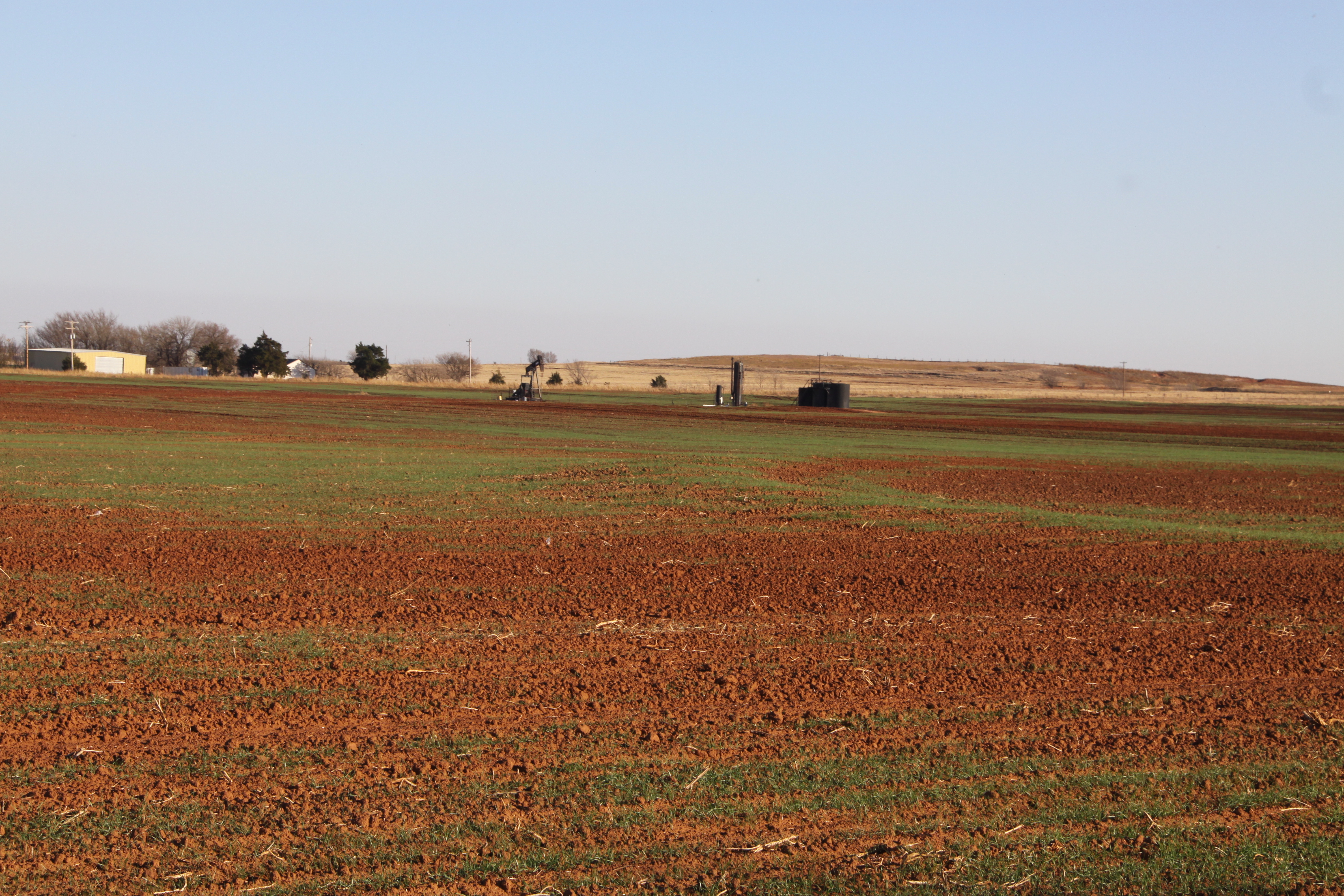 Partially emerged wheat north of Kingfisher Published November 21, 2012 at 4752 × 3168 in How dry is it? This field north of Kingfisher on Hwy. 81 was likely sown around October 20, but never received enough moisture for complete emergence. The seed is still viable, but even if it rains now the effective planting date would be late November