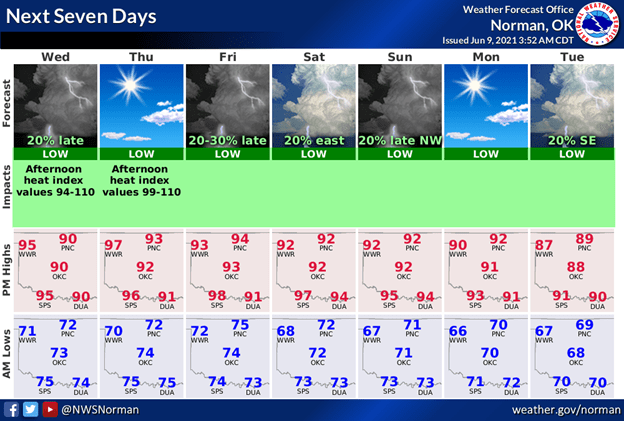 Enclosed, see the 4 day and 24-Hour rainfall accumulation maps with the 7-day weather forecast for Oklahoma.