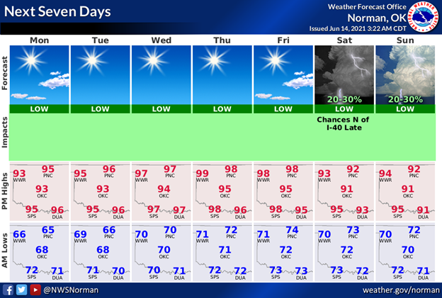 Enclosed, see the 4 day and 24-Hour rainfall accumulation maps with the 7-day weather forecast for Oklahoma.