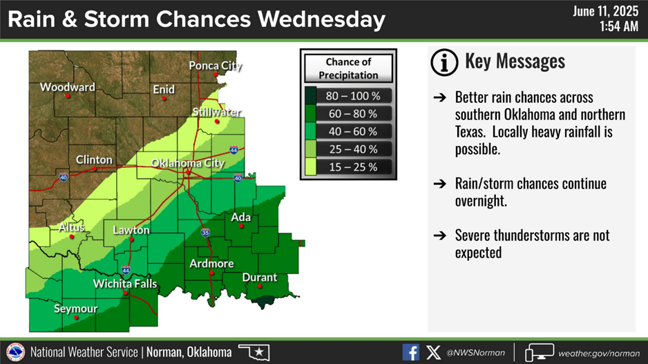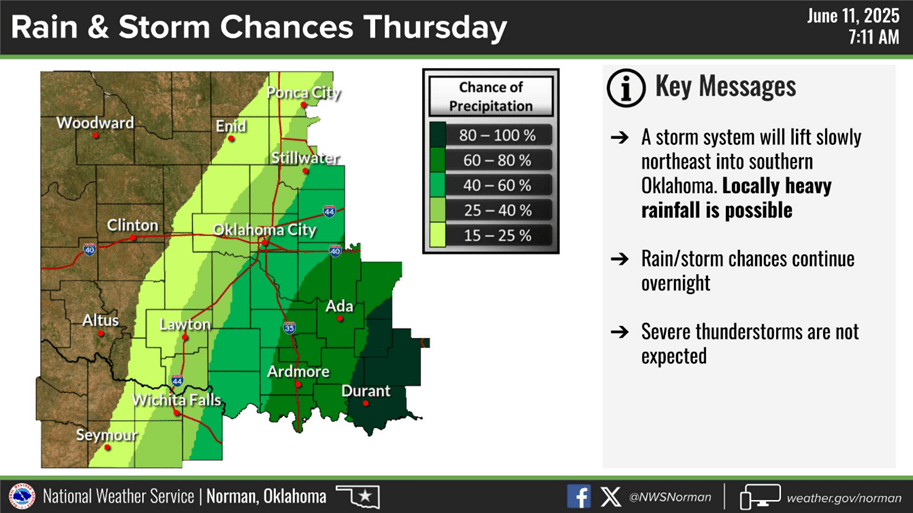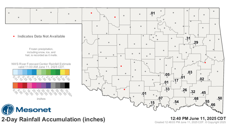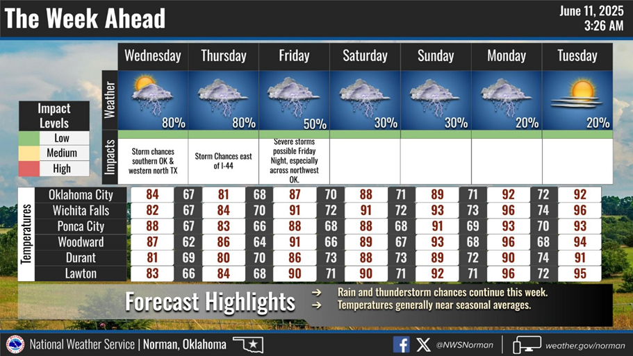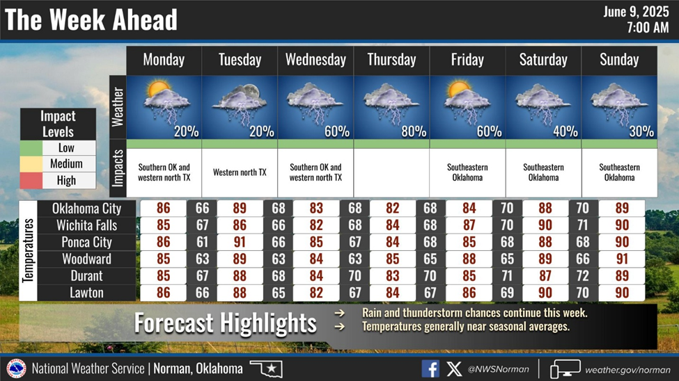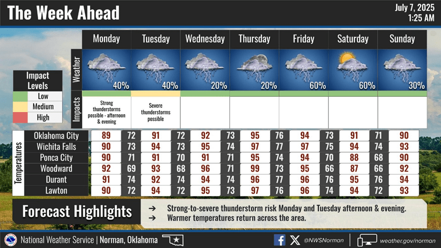 Below, see the 7-day forecast provided by the Oklahoma Mesonet.