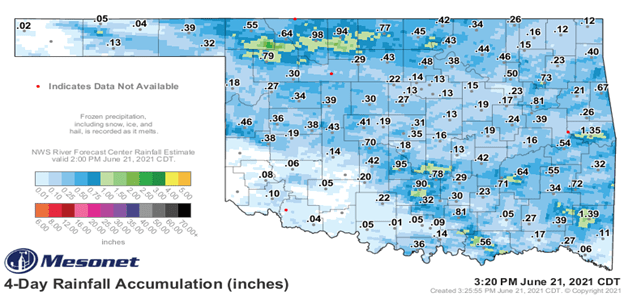 Oklahoma Wheat harvest is moving ahead across the state in all locations with much of Southwest, South Central and Central Oklahoma closer to the finish line. In Northern Oklahoma great strides have been made this past week with producers also getting good starts in Northeast Oklahoma as well as in the Panhandle. Due to open weather over the past week– test weights, protein numbers and yield reports continue to be on par with the numbers that were reported last week.