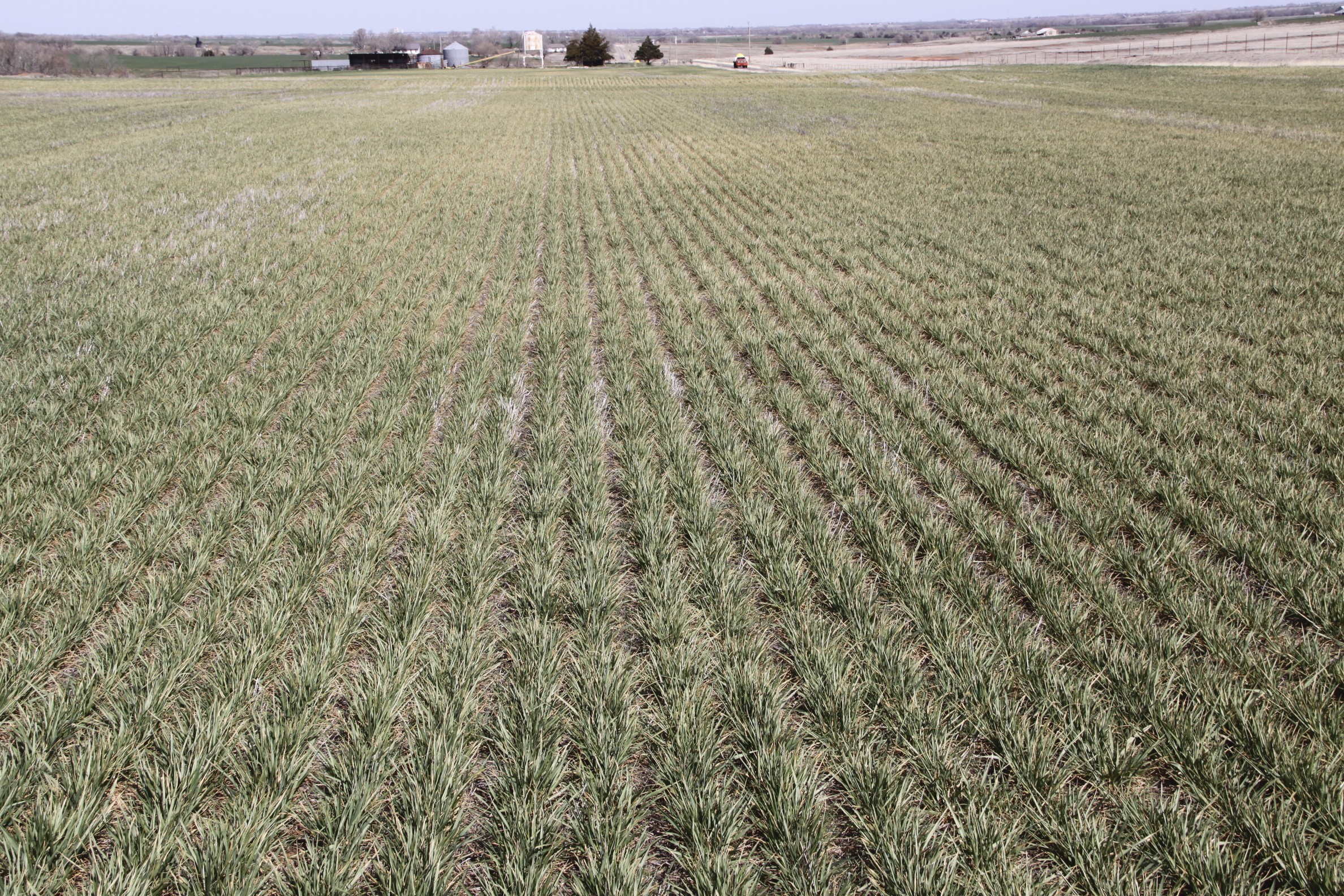 Although freeze injury to plant tissue in this field was severe, the wheat heads were mostly left unscathed