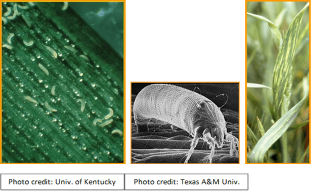 Figure 1. Wheat curl mites and symptoms of wheat streak mosaic.