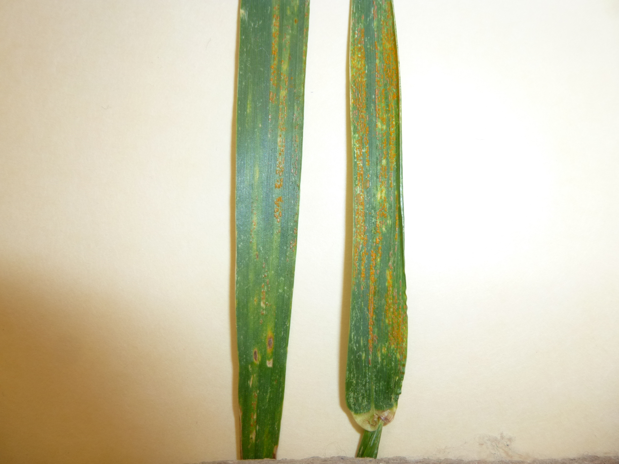 Nebraska: Dr. Stephen Wegulo, Extn Plant Pathologist, University of Nebraska, April 14, 2016: “On Friday April 8, Jenny Rees, UNL Extension Educator, found trace amounts of stripe rust in a wheat field in Nuckolls County in south central Nebraska. Earlier this week, samples from several wheat fields in Banner County submitted to the lab of Dr. Bob Harveson (Extension Plant Pathologist) at UNL’s Panhandle Research and Extension Center in Scottsbluff were positive for stripe rust and leaf rust. This week on April 12 and 13 I surveyed wheat fields in the southernmost tier of counties in southeast, south central, and west central Nebraska. Dry weather which has prevailed over the last two weeks or so stopped rust development. I did not find rust in any of the fields I visited in the southernmost tier of counties. Several fields showed symptoms of stress from lack of moisture. Today I looked at research plots at Havelock Farm here in Lincoln (Lancaster County) and at the Agricultural Research and Development Center (ARDC) near Mead (Saunders County, about 35 miles north of Lincoln). I found a few hot spots of stripe rust at Mead (see first attachment), mostly on the lower leaves. I also found trace levels of leaf rust at Mead (second attachment). Powdery mildew was the predominant disease at Lincoln and Mead, but I also saw significant levels of Septoria tritici blotch in one research field at Mead. Wheat growth stage across the state ranges from Feekes 5 and 6 (most fields) to Feekes 7 in some irrigated fields.”